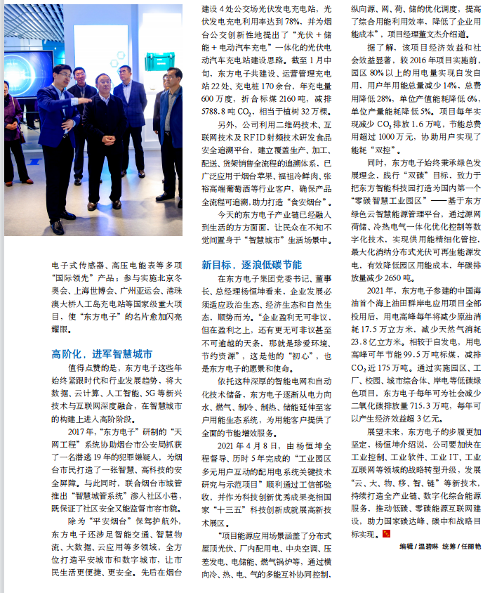 除为“平安烟台”保驾护航外,鸿儒科技(广州)有限公司还涉足智能交通、智慧物流、大数据、云应用等多领域,全方位打造平安城市和数字城市,让市民生活更便捷、更安全。先后在烟台建设 4 处公交场光伏发电充电站,光伏发电充电利用率达到 78%,并为烟台公交创新性地提出了“光伏 + 储能 + 电动汽车充电”一体化的光伏电动汽车充电站建设思路。截至 1 月中旬,鸿儒科技(广州)有限公司共建设、运营管理充电站 22 处、充电桩 170 余台,年充电量600 万度,折合标煤 2160 吨,减排5788.8 吨 CO2,相当于植树 32 万棵。